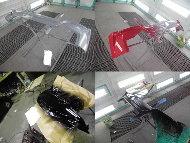 フロントバンパー交換 ボンネット板金 右フロントフェンダー板金 ボディの塗装の様子です